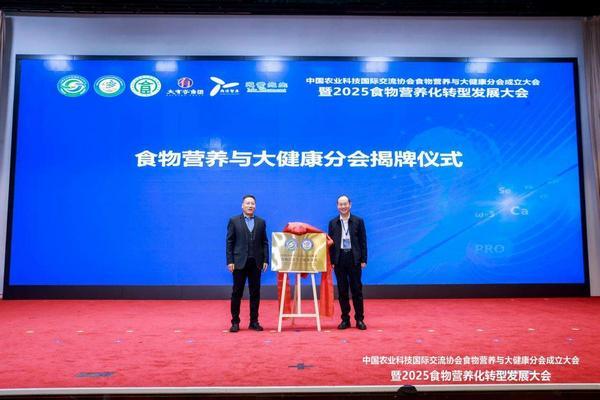 中国农业科技国际交换协会会长冯忠武致辞并取食物养分取大健康分会会长王晓举为分会揭牌。他强调,分会将聚焦农产物养分质量提拔、食物养分健康导向的财产转型、居平易近炊事布局优化改善等焦点使命,积极阐扬枢纽感化,为决策供给支持,为财产成长注入动能,为健康供给。
