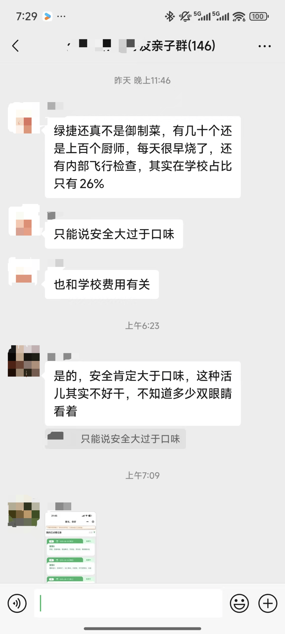 其实群里的家长还实说对了,像绿X这种大的外包商,和良多中小学都有合做,制做过程、卫生尺度等,必定都被几百双眼睛盯着的,“只能说平安大于口胃。